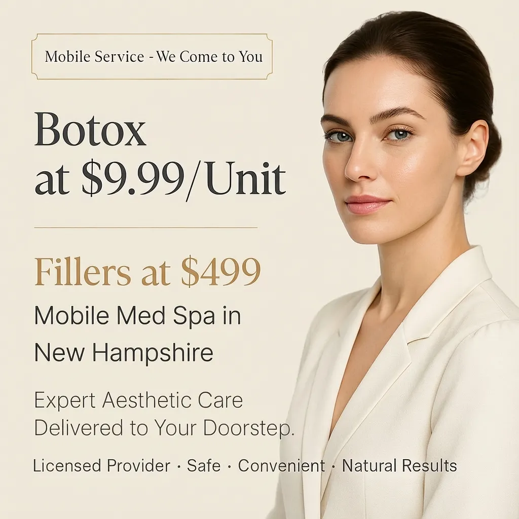 Look refreshed and youthful without leaving home — Botox, Fillers & PDO Threads, mobile service included.